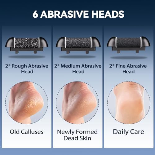 - Versatile Performance – With two power settings and six interchangeable grinding heads, you can easily customize the experience to meet your specific needs, ensuring soft, smooth feet with minimal effort.