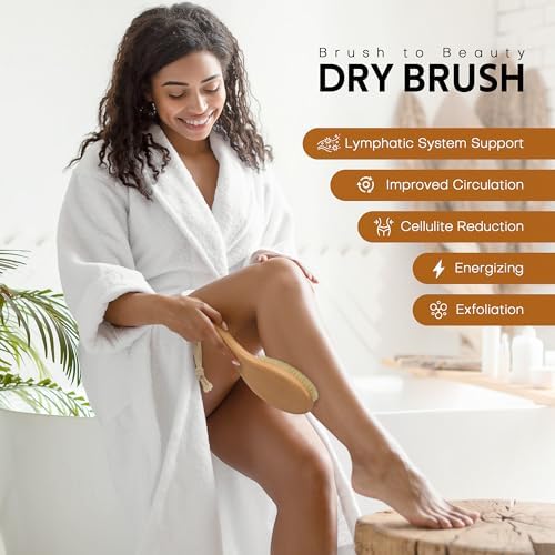 Dry Brush for Body, Natural Bristle Dry Exfoliating Body Brush for Skin Care, Cellulite, Lymphatic Drainage