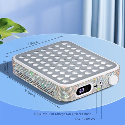 Nail Dust Collector with 2 Reusable Filters,Nail Vacuum Dust Collector Quiet for Nail Tech Art, Powerful Nail Fan and Duster Collector,Nail Vacuum Cleaner for Salon and Home(AB Diamond)