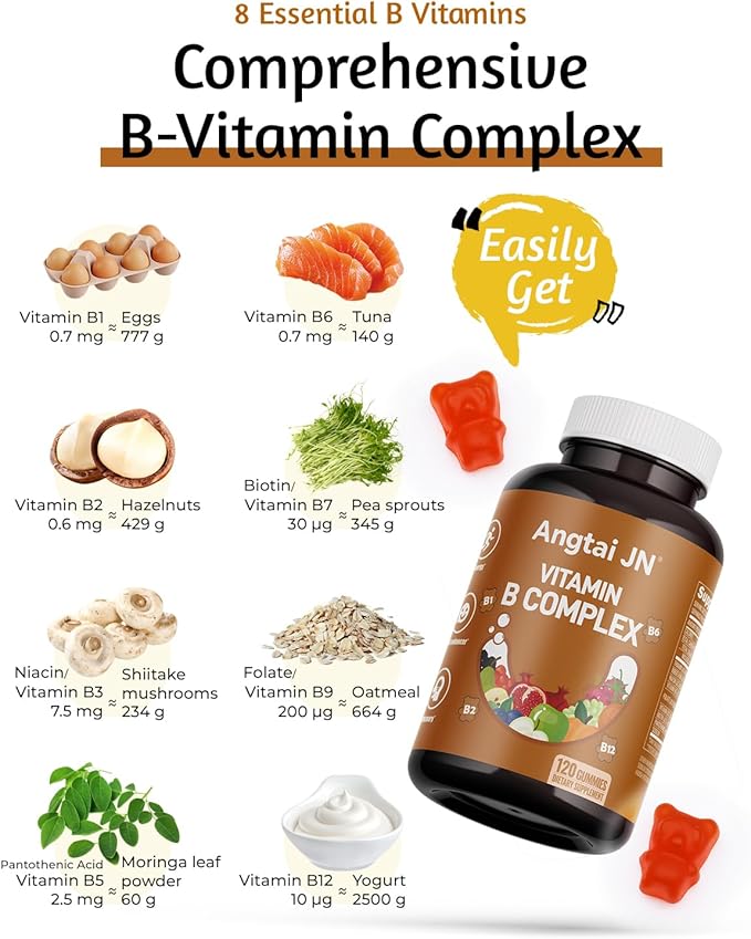 - Comprehensive B Vitamin Support: Each B-Complex Vitamin Gummy contains 8 essential B vitamins (B1, B2, B3 (Niacin), B5, B6, B7 (Biotin), B9 (Folate), B12) to supplement daily nutritional needs and support energy production, metabolism, nervous system health and overall vitality.