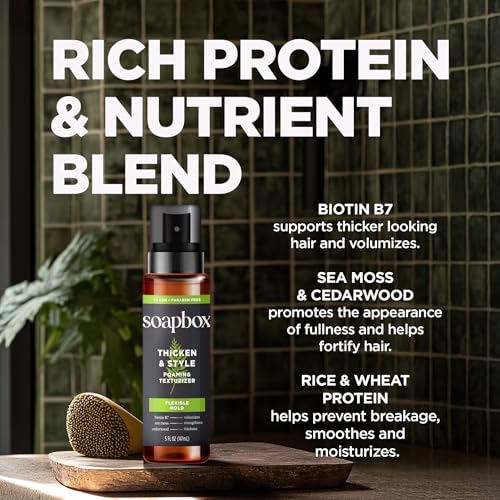 Soapbox Men's Thicken & Style Foaming Texturizer, Men's Hair Styling Foam, Hair Care for Men, 5oz