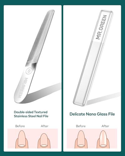 - 【10 PCS Manicure Set】Professional manicure set includes nail clipper/ beveled nail clipper/ thick nail clipper/ nose hair clipper/ tweezers/ ear wax remover/ V-shaped push stick/ nail dirt remover/ glass polishing file/ nail file. Super convenient nail care kit, Mr. Green's selection of handy kits eliminates the need to pay for a single nail clipper or facial tool!