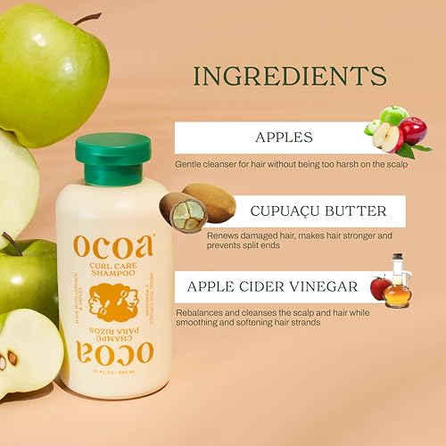 OCOA Curl Care Shampoo & Conditioner Duo – Sulfate-Free with Apple & Cupuaçu Butter, Moisture Retention, Hair Growth, and Healthy Scalp – For Wavy, Curly, Dry, Damaged & Color-Treated Hair – 10oz