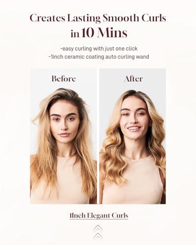 - Nice Long-lasting Curls: 1 Inch Rotating Curling Iron with ceramic coating, the curling wand creates long lasting nice smooth waves.