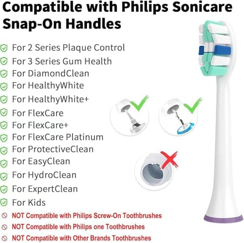 - Wide Compatibility – Fits Philips Sonicare models C1, C2, C3, A3, G2, G3, W3, 4100, 5100, 6100, and more (Snap-On System). Perfect for DiamondClean, ProtectiveClean, Kids, FlexCare+, HealthyWhite, and other series