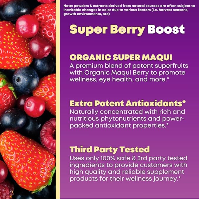 - WHAT IS MAQUI BERRY: Maqui Berry, often available as a highly concentrated extract, powder, capsules, is a vibrant purple fruit native to South America prized for its exceptional antioxidant content, including anthocyanins, polyphenols, and delphinidins. Traditionally used for its health supporting properties, Maqui Berry can help support one's immune health, heart health, vitality and wellness, and overall eye health & tear production by delivering a powerful nutrient profile and antioxidants.*