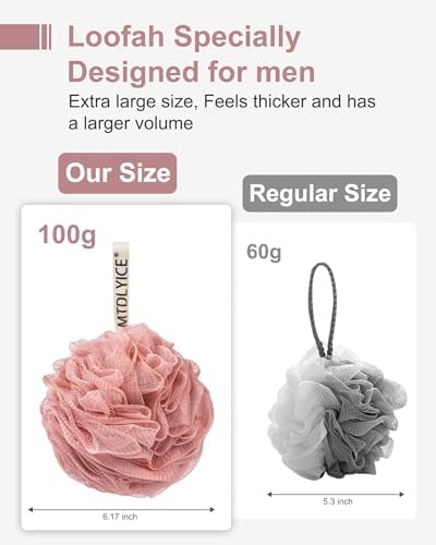 - 100g Extra Large Loofah: larger size and density, easier to generate foam, greatly increased contact area with the body, cleaning efficiency significantly increased, relaxing exfoliation, gentle skin