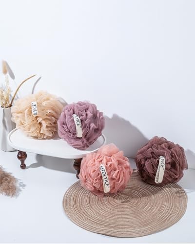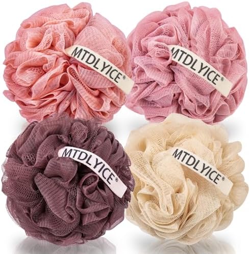 Loofah Sponge, XXL Large Loofah 100g 4 Pack, Bath Sponge Soft Mesh Shower for Men, Body Scrub, Shower Pouf Bath Accessories, for Body Wash, Soap (Red Soil)