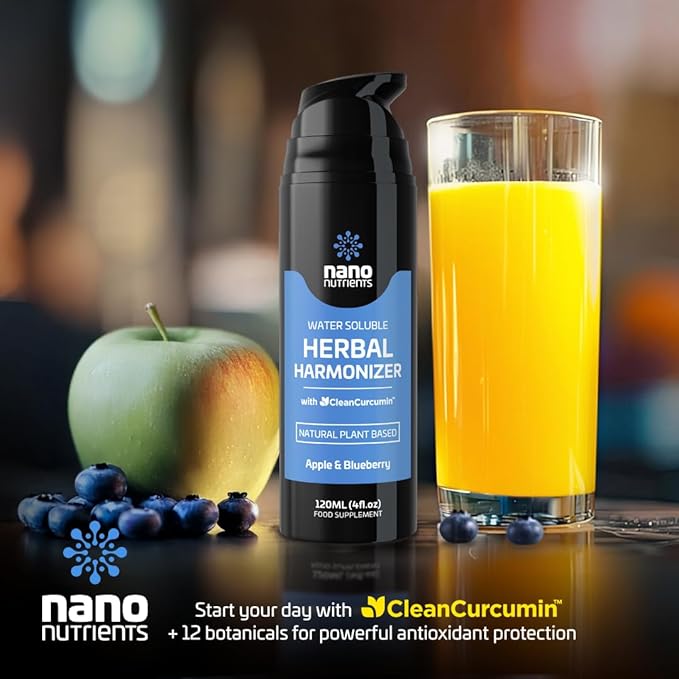 Herbal Harmonizer with CleanCurcumin(TM) - Multi Botanical Antioxidants Supplement - Water Soluble - Nano Curcumin - Holistic Wellness Defender - Healthy Drink Mix (4 fl.oz, Apple and Blueberry)