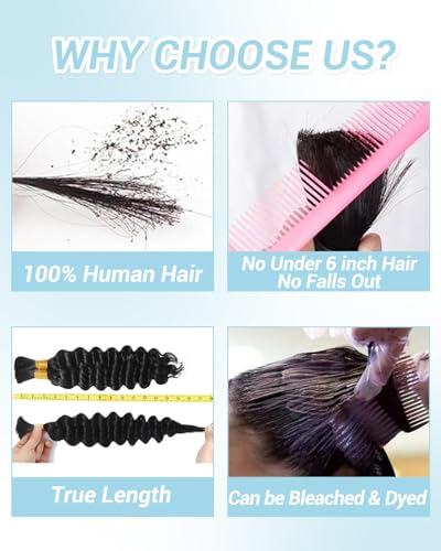 Flagship Human Braiding Hair for Boho Braids 16 Inch 2 Bundles 100g Deep Wave Bulk Human Boho Hair for Braiding 12A Virgin Curly Human Hair for Boho Knotless Braids Human Hair Bundles P27/613
