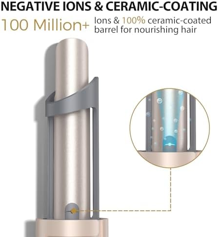 - POWERFUL NEGATIVE IONS & HIGH-DENSITY CERAMIC OIL:This spinning hair styler releases more than 100 million negative ions and the tourmaline ceramic heating barrel is covered with high-density ceramic oil, which allows you to create incredibly, smoother, finer, layered curls, let's say goodbye to heat damage to your hair.