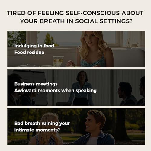 - 【Instantly Freshens Breath】Featuring a micron-level atomization nozzle with a top-filter design, it ensures 360° soft coverage for a thorough clean. This breath spray with a 13 μm atomization aperture, 600 micro-fog holes, and 215,000 high-frequency sprays per second, it delivers 89 million fine water ions—no water droplets, just a delicate mist that reaches every corner in 3 seconds. Perfect for dating, social events, or business meetings to eliminate bad breath embarrassment