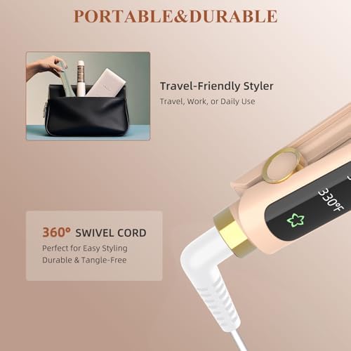 - TRAVEL-FRIENDLY & QUICK STYLING ON THE GO: Mini hair straightener with curling iron features a 9.2 in body, weighs only 0.55 lb, and comes with a 70.9 in extra-long cord and 360° swivel. Whether at home, in the bathroom, or on the go, the extra-long cord provides convenience and ease of use.With dual voltage (110-220V), this flat iron is the perfect companion for international travel. All these features combined make it an ideal travel choice and a must have for any styling routine.