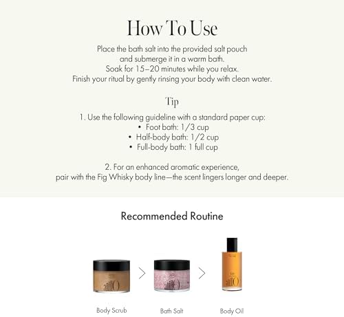 - Whisky-Infused Fig Fragrance for a Pampering Bath Ritual : Enjoy a unique blend of sweet fig and warm whisky notes that fill your bathroom with a soothing, spa-like scent. Ideal for relaxing body and mind after a long, stressful day.