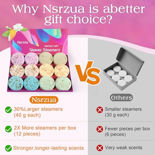 - Safe & Natural Ingredients: We are committed to providing a worry-free spa aromatherapy shower experience. Nsrzua shower vapor tablets are crafted from the finest natural ingredients, free from harmful chemicals and non-toxins. Enjoy an invigorating self-care experience that relaxes your mind, nurtures your body, and indulges your senses without any worries— perfect women self care gift for those who value purity and wellness!