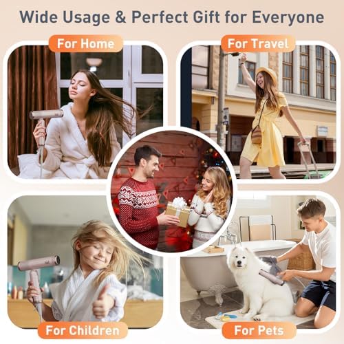 - 【Mini Dual Voltage Hair Dryer for Travel】Featuring a patented exterior design, this portable dual-voltage blow dryer is built for global travel. It supports both 120V and 220–240V, ensuring compatibility worldwide. With its foldable handle, it becomes as compact as a mobile phone and lighter than a can of soda—easy to carry and ready for styling anytime, anywhere. Ideal for travel, home use, or as a gift, this lightweight design fits easily into any travel bag or suitcase, making it the perfect travel companion
