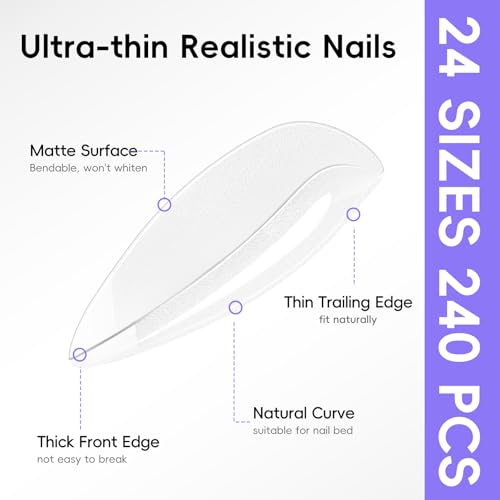 - 12 Sizes High Quality Nail Tips: Each shaped nail tip comes in 12 sized pieces with a tapered, thick-to-thin design for better adhesion and comfort. Slightly thicker than natural nails for durability without bulk. These almond gel extensions made from high quality materials. They are comfortable, durable, and resistant to breaking, providing a look as natural as real nails