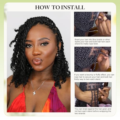 - Kinky Twist Hair Materia:Afro Kinkys Bulk Human Hair is Made of Real Human Hair,Soft to the Touch,No Smell,Blend Perfectly with Your Own Hair,Looking Natural and Durable.