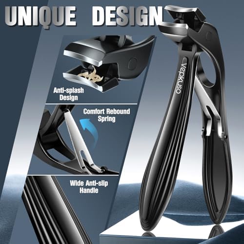 - Hygienic Nail Clippers Set with Anti-Splash Design & Wide Open Jaws: Say goodbye to messy clippings! The angled nail clipper features a built-in catcher to prevent flying debris, while both **toenail clippers for thick toenails and fingernail clippers boast wide-open jaws for effortless cutting of thick nails. A must-have for a complete manicure set focused on hygiene and efficiency.