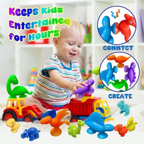 - [Suction Cup Toys for Extra Fun] - bath bombs gift set can be used as birthday gifts for boys girls, include 12 colorful dino egg bath fizzies with different dinosaur toys inside and extra 4 suction cup dinosaur toys . Suction toys can stick in any smooth surfaces, build, connect, pop break apart, adding an interactive element to bath time. This combination of bath bombs and toys promotes creativity and sensory play, keeping children entertained and engaged during their bath.