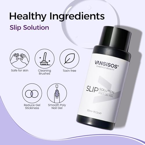 - Poly extension Gel Nail Kit: VANSISOS poly nail gel kit contains 3 colors poly nail gel, 30ml polygel slip solution, dual-ended nail brush, nail clips, glass cup. Poly gel nail kit for beginners and the professionals DIY at home or salon. Three classic color combinations are suitable for your daily life matching.