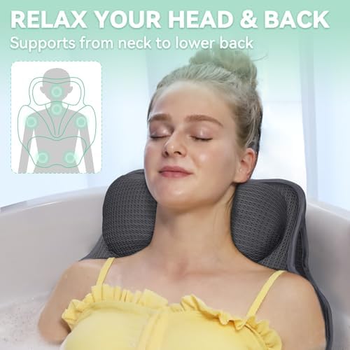 - 【Large Size, Better Fit】This luxury bathtub pillow measures 19.29×18.11 inches, featuring an ergonomic design that balances softness and moderate support.The newly upgraded wider padding fully covers the shoulders and upper back, thereby helping you relax in a natural position without any discomfort.