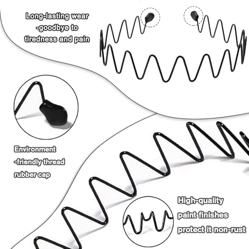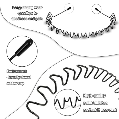 - 【HIGH-QUALITY MATERIALS】 Hair bands for men is made of metal, and the high-quality paint will not fall off and rust from the hairhoop. It is sturdy and durable. There are plastic protective covers at both ends, which will not hurt the scalp and ears.