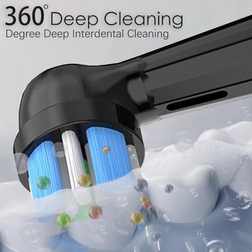 - 【Deep Cleaning】: The Round Brush Head gently wraps around each tooth, providing broader coverage, Specially engineered bristles reach deep between teeth, even in hard-to-reach area and where brushing often misses to Clean deep,for a smile that shines.