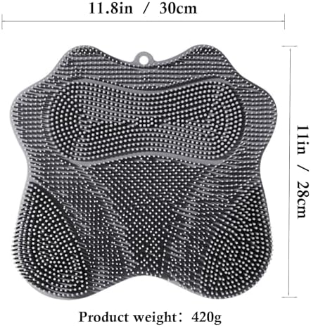 - 【Strong Suction Cup Design】 The silicone foot scrubber for shower is made of high quality silicone material, soft and comfortable, measuring 11.8 in x 11in. Equipped with enlarged strong suction cups on the bottom for stability. Equipped with hanging holes, easy to hang for drying and more space saving.