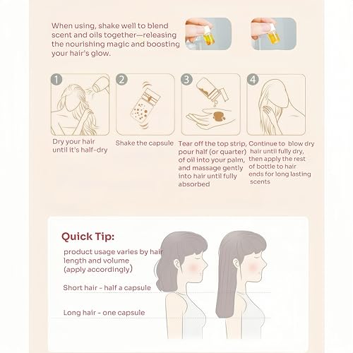 - Effortless Hair Care: Capsule-encapsulated hair perfume serum for instant shine! After washing and blow-dry, twist open a hair treatment oils capsule and massage the lightweight serum through hair, no need to rinse for silky smooth, manageable hair and beautifully scented all day! It’s also a thoughtful gift for women who love to enjoy fresh, delightful hair and exude a soft, feminine fragrance wherever they go