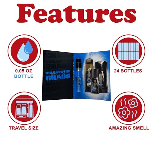 Anarchy Body Spray Sampler, Bulk 24 Pack Cologne Samples for Men, Trial Size Eau De Toilette Pump Spray Sample Fragrance, Carded Giftable Packaging for Hygiene Packages, Travel Size .05 fl oz Each
