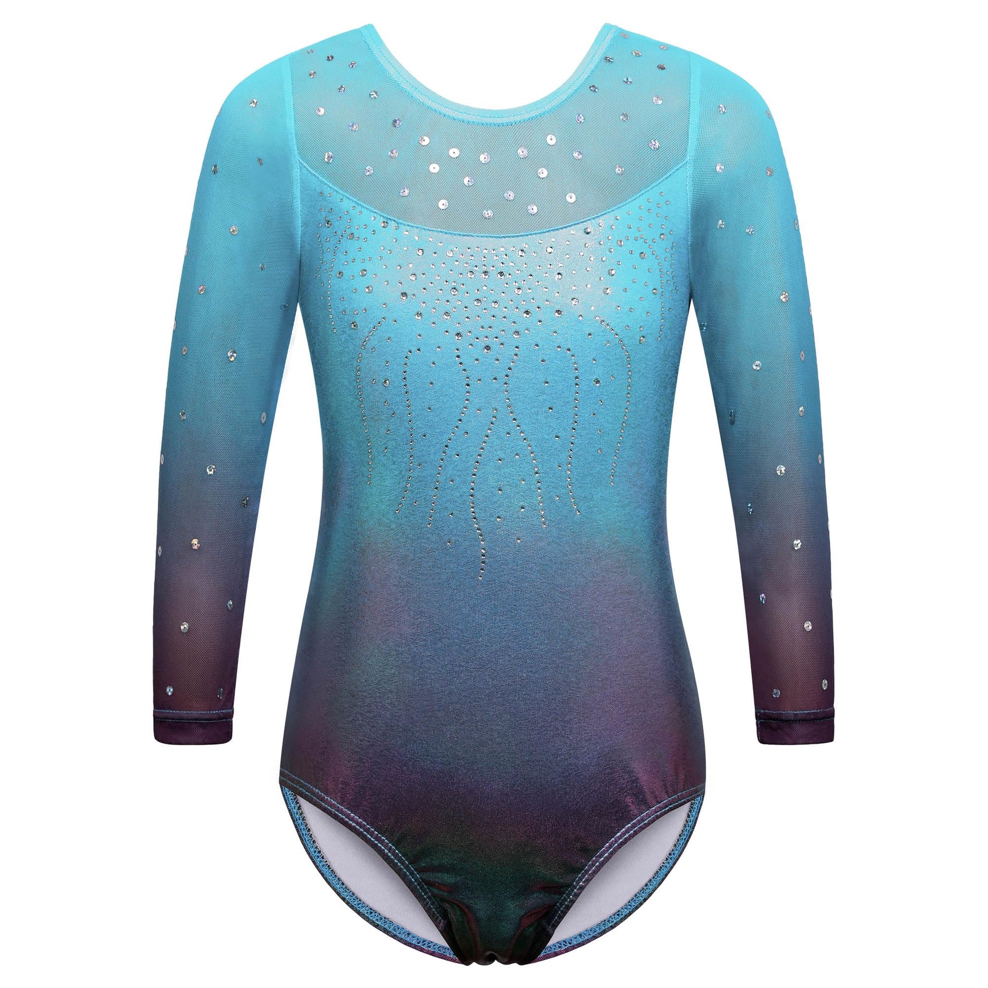 BAOHULU Gymnastics Leotard for Girls Shiny Sequins Mesh Sleeve Practice Dancewear B285_Blue_5A