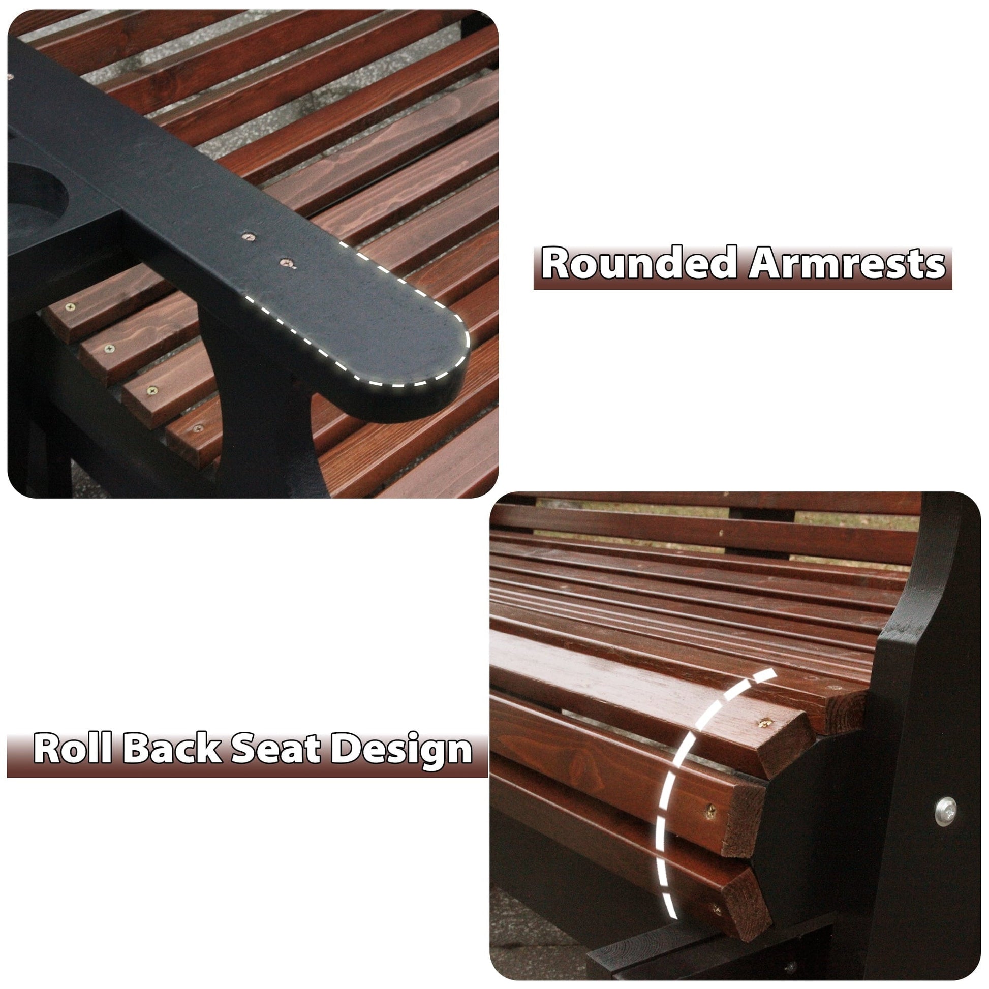 Beneouya Outdoor Glider Bench, Wooden Glider Chair with Cup Holders for Backyard, Garden Porch, Home, Dark Grey and Dark Brown
