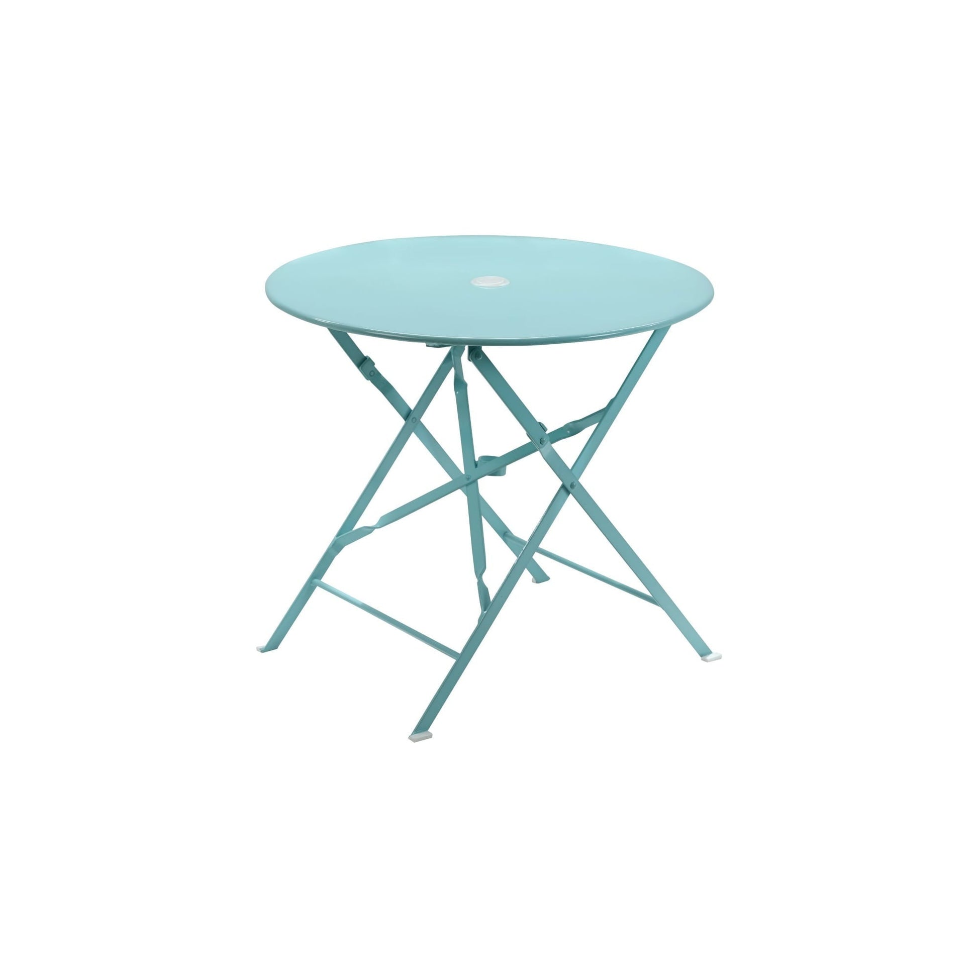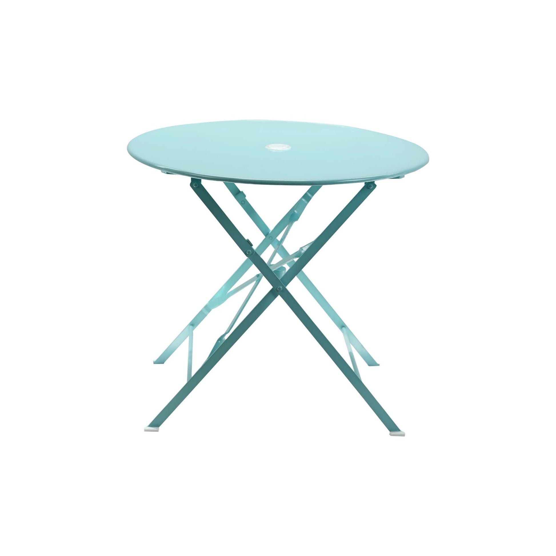 Contemporary Home Living Round Foldable Outdoor Patio Table with Umbrella Hole - 30" - Teal Blue