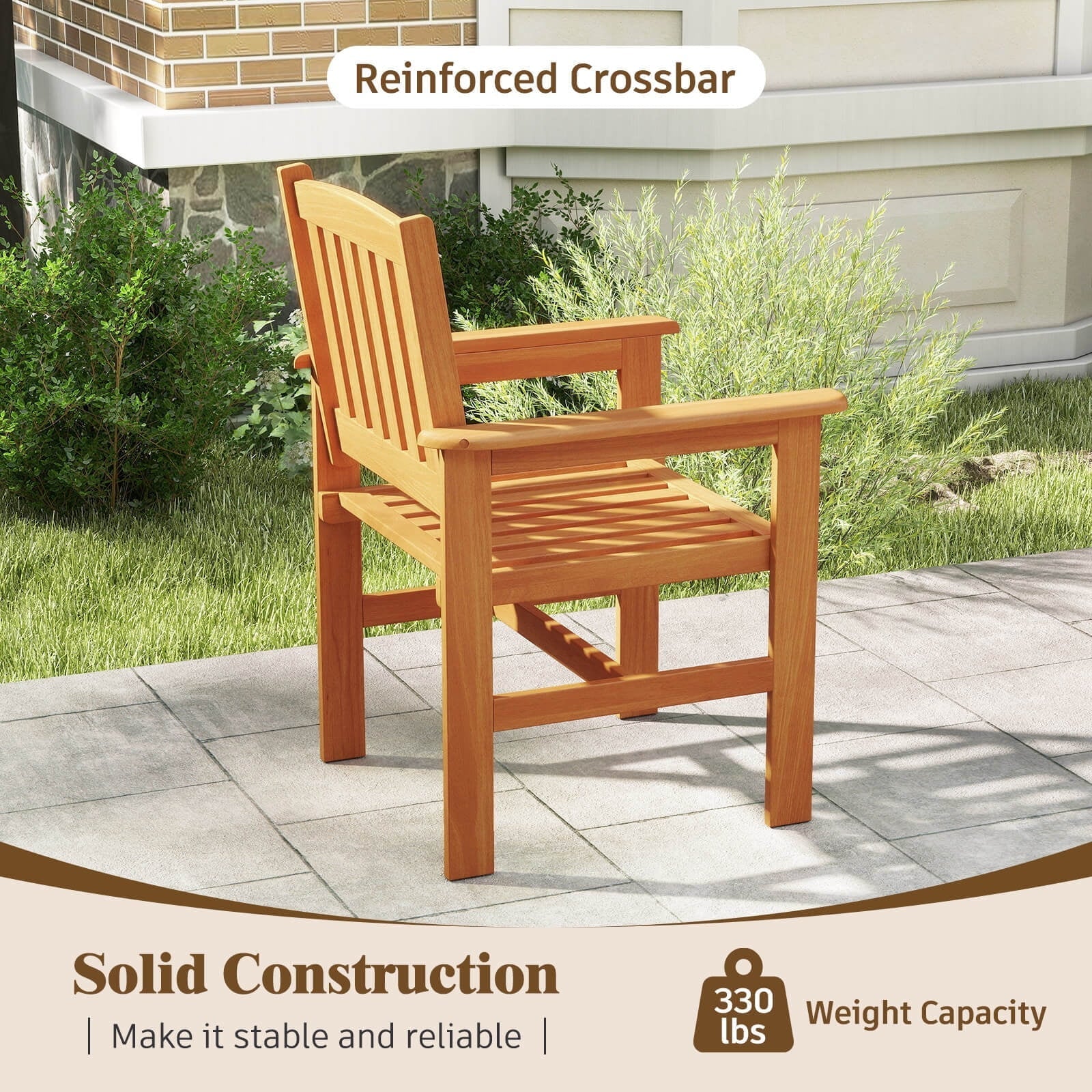 Costway Patio Chairs Set of 2 Outdoor Wooden Dining Chairs with Inclined Backrests