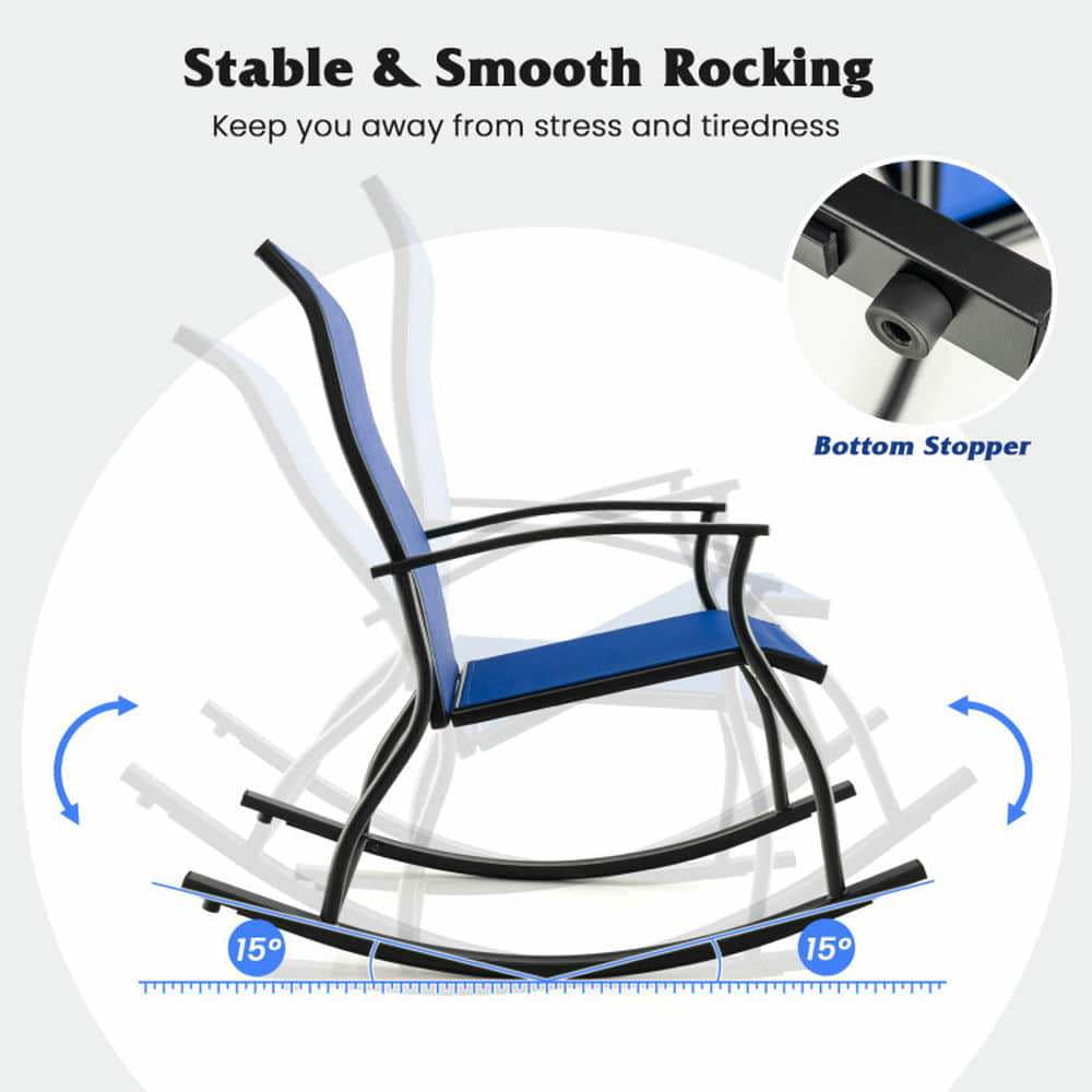 Demifill 2-Piece Outdoor Rocking Chairs with Breathable Backrest, Navy
