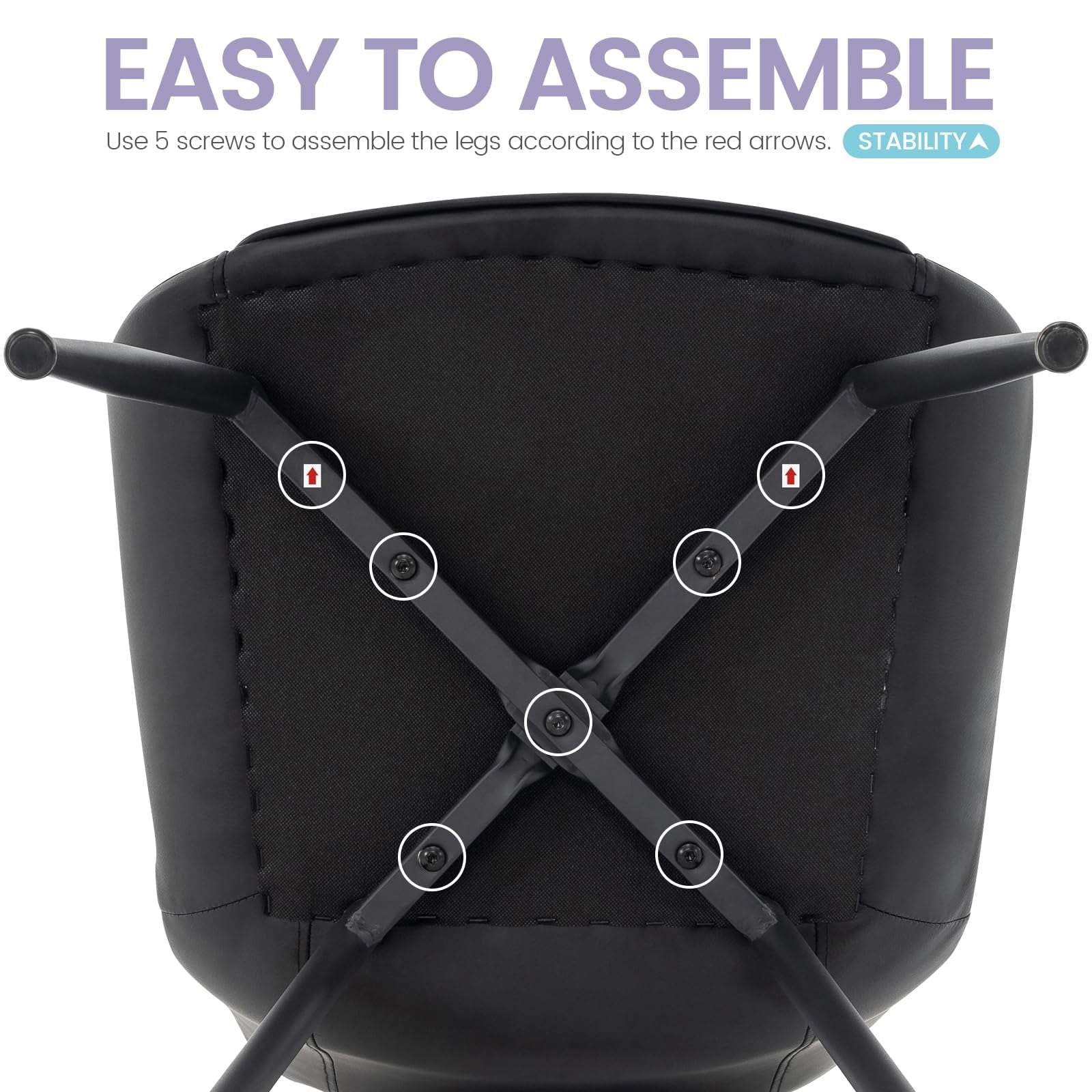 Dining Chairs Set of 2, PU Leather Armless Kitchen Chairs with Backrest, Thick Cushions, Sturdy Metal Legs, Modern Upholstered Dining Room Chairs (Black)