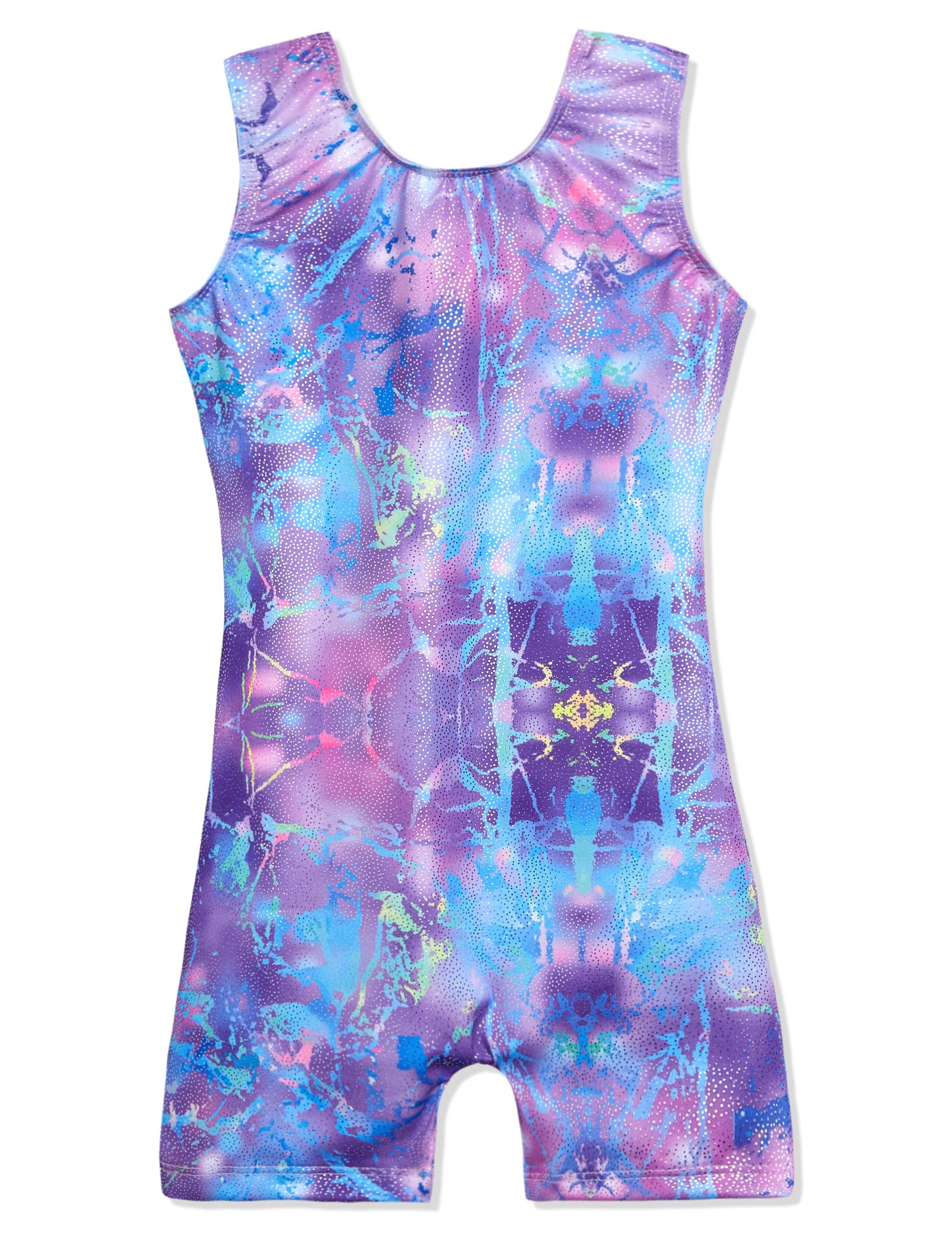 Domusgo Girls Gymnastics Leotards Size 5-6 Years Old Sparkle Pink Blue Technology Biketard with Shorts