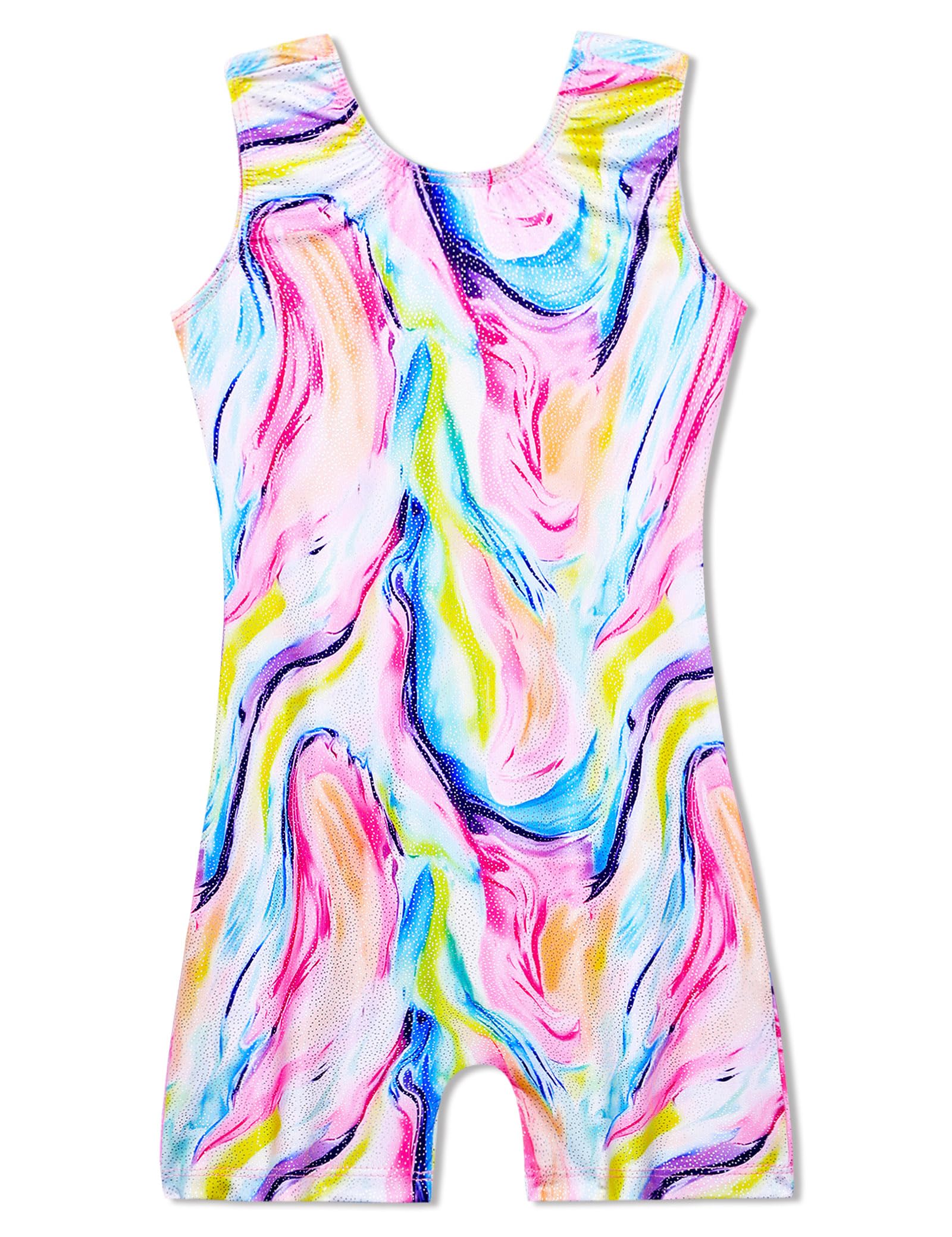 Domusgo Girls Leotards for Gymnastics Size 5-6 Years Old Sparkly Multicolor Tie Dye One Piece Biketards
