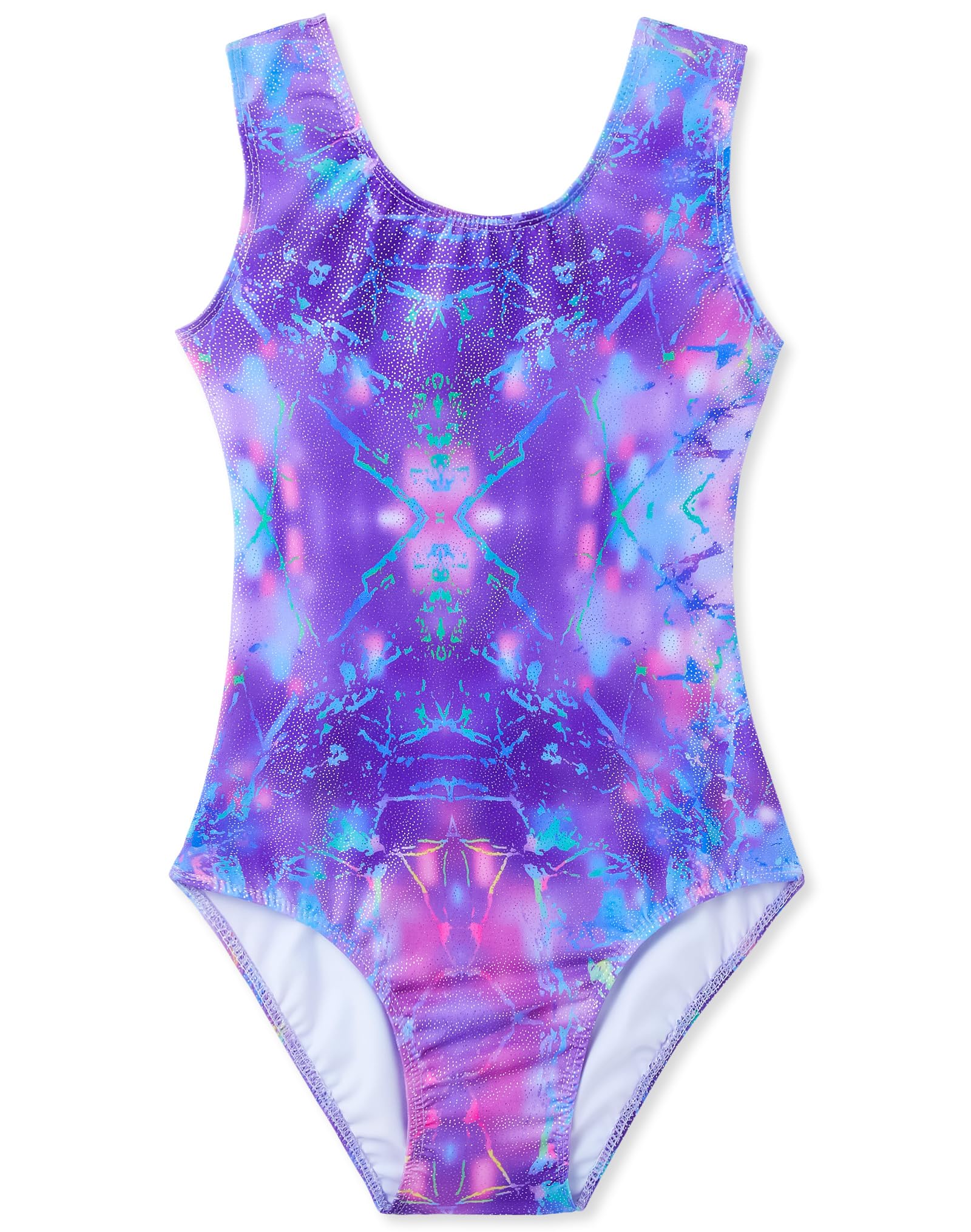 Domusgo Gymnastics Leotards for Girls 5-6 Years Old Blue Pink Tie Dye Sparkly One Piece Tumbling Outfits