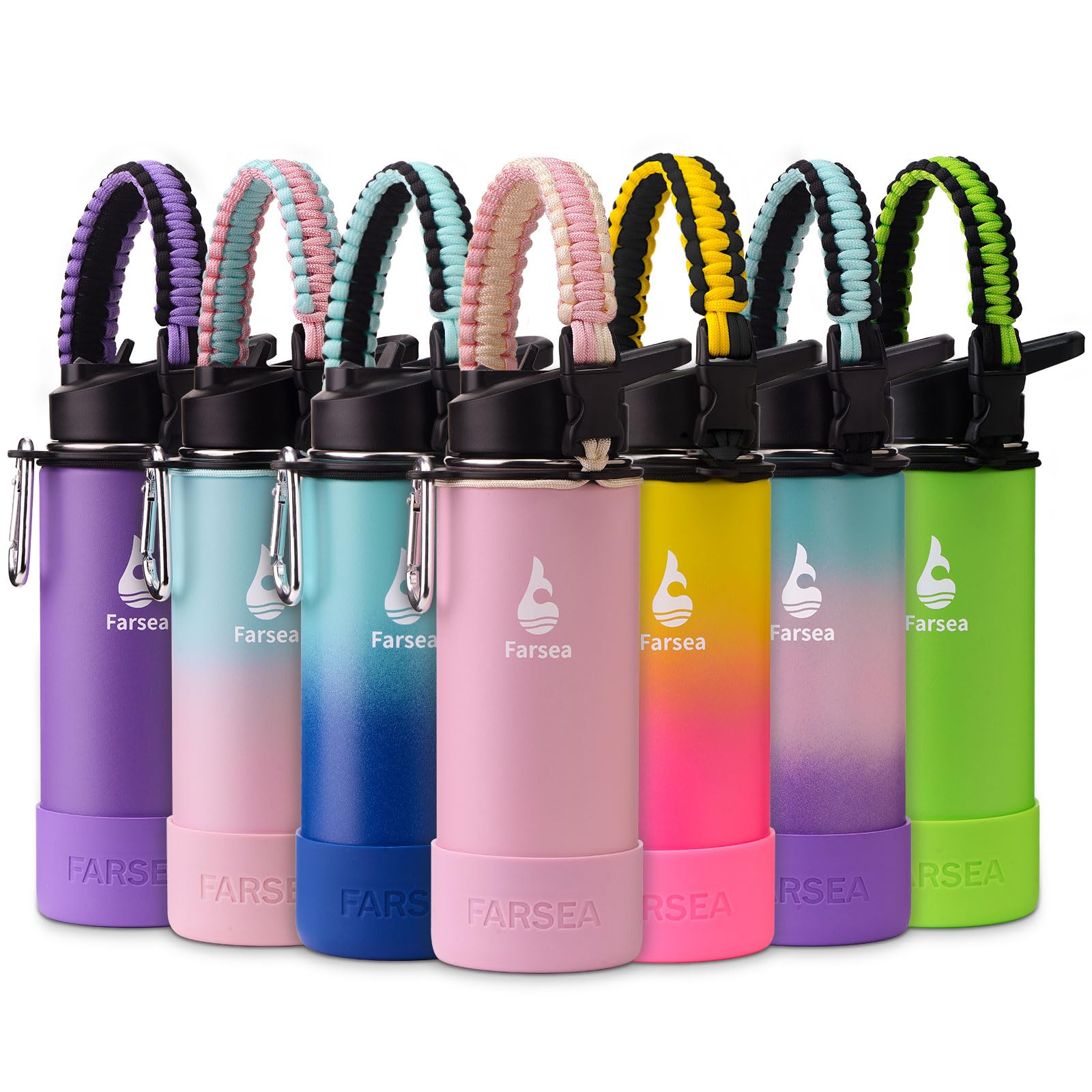 - WHAT YOU'LL GET: Farsea is committed to providing the best value and highest quality to the customers; We offer Continuous After-sales Service and Solve All Problems; We offer several different capacity bottles(12 oz, 18oz, 24 oz, 32 oz, 40oz) and you can choose according to your needs; Package: Comes with 2 lids (Straw lid & Spout Lid), paracord holder, protective Silicone Boot, nice packing box, 2 straws, and straw brush