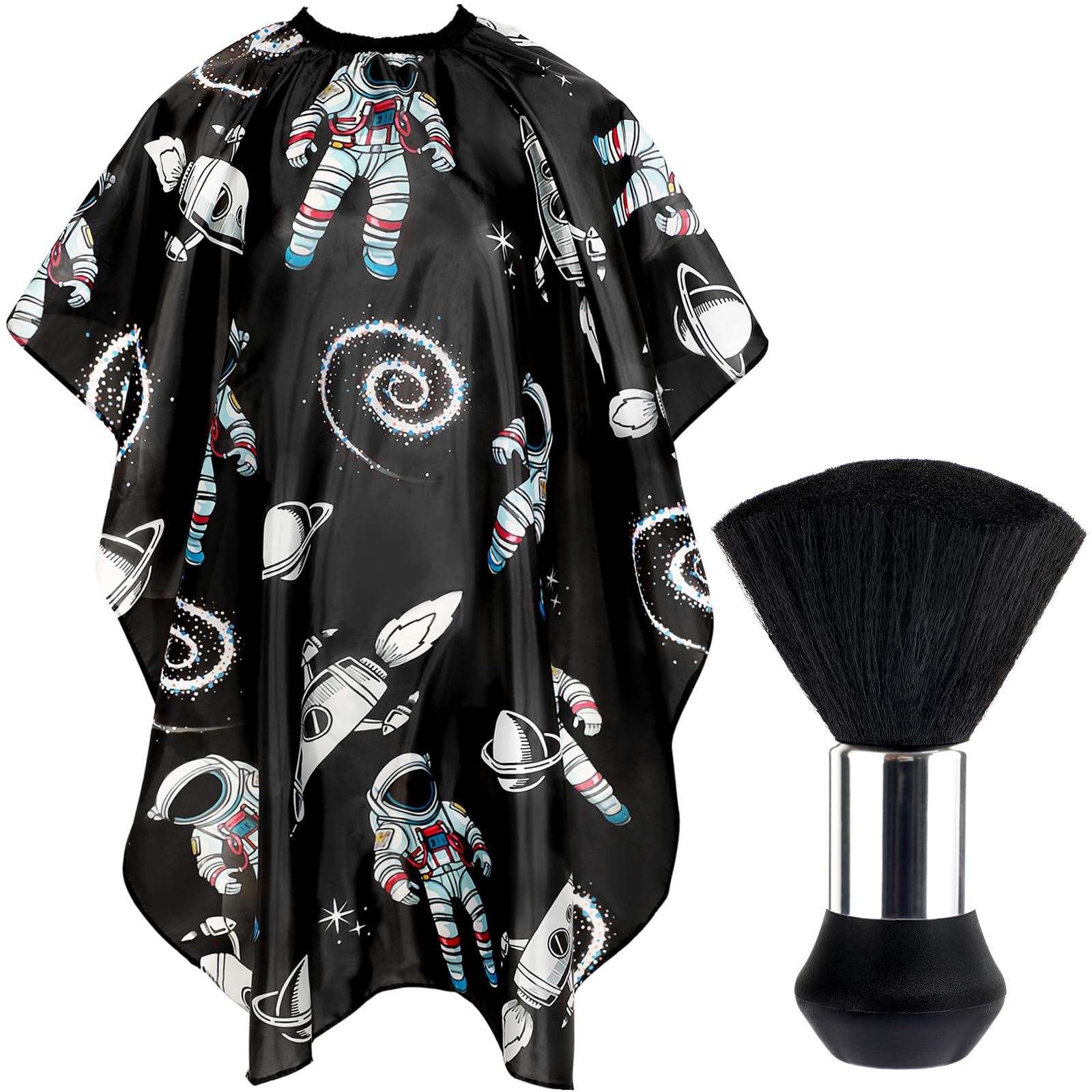 - Fashionable and Cute Design: The kids haircut cape features black as the background color,printed with astronaut and space patterns, making hair cut capes for kids very fashionable and cute. The design not only caters to children's aesthetics, but also stimulates their curiosity about space. During the haircut process, children can immerse themselves in the mysterious atmosphere of space, reducing their fear of haircuts