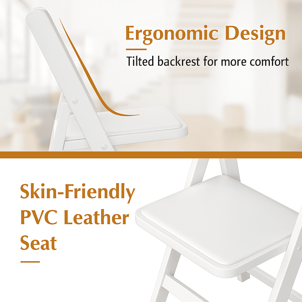 Upgrade your event seating with the Fenbeli 4 Pack White Resin Folding Chairs, designed to combine durability, comfort, and elegance. Crafted from high-quality weather-resistant resin, these folding chairs feature a stylish white finish that complements any indoor or outdoor setting—from weddings and parties to conferences and backyard gatherings. Each chair is equipped with a cushioned seat that offers added comfort for long events, while the strong structure supports up to 450 lbs per chair, ensuring stability and safety for every guest. Lightweight and foldable, these chairs are easy to set up, stack, and store, making them a practical and space-saving solution for any occasion.