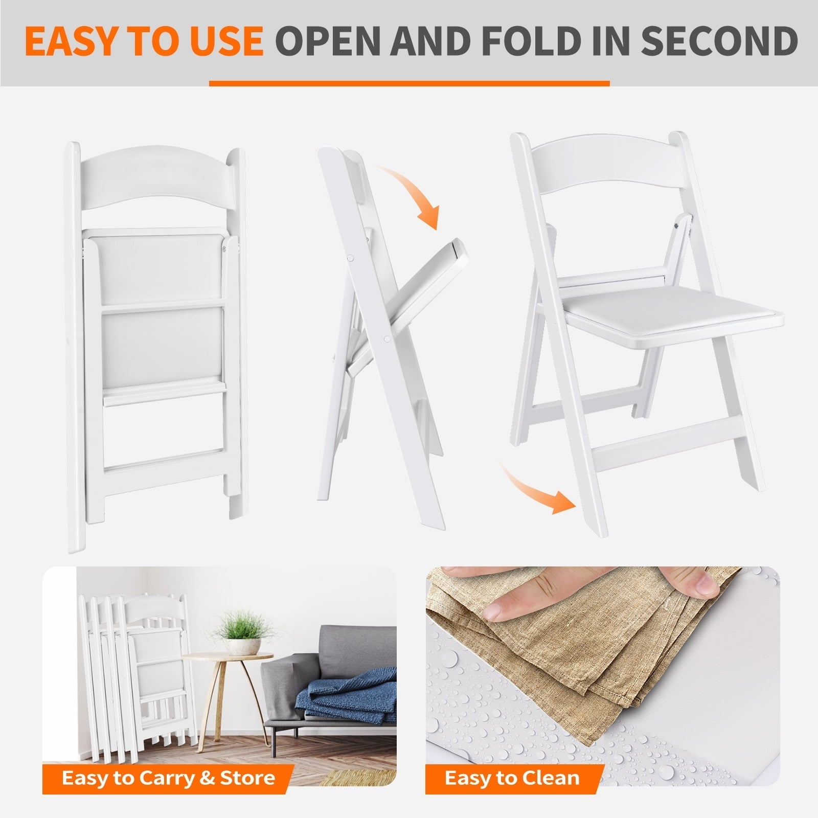 Fenbeli 4 Pack White Resin Folding Chairs with Padded Seats - Indoor/Outdoor Folding Chairs for Events Lightweight Foldable Chairs