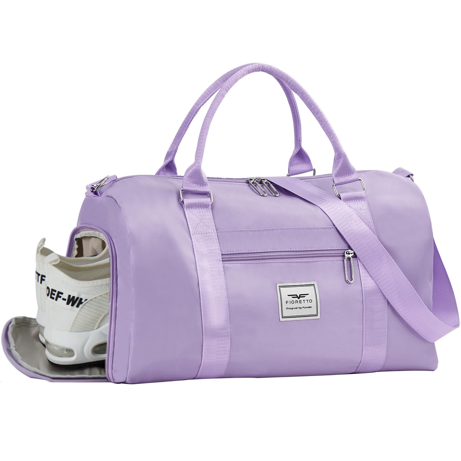 FIORETTO Womens Gym Tote Duffle Bag with Wet Pocket & Shoe Compartment, Sports Duffel Overnight Weekender Hospital Workout Carry on Bag for Girls, Ideal for Travel, Swimming, Dance, Ballet Purple