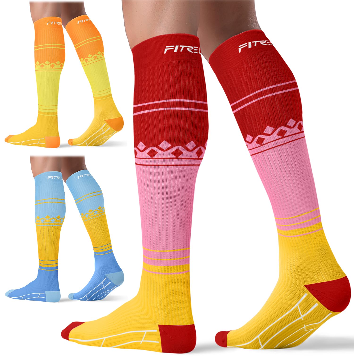 FITRELL 3 Pairs Compression Socks for Women and Men 20-30mmHg- Support Socks for Travel, Running, Nurse, Knee High Socks, Popsicle, S/M