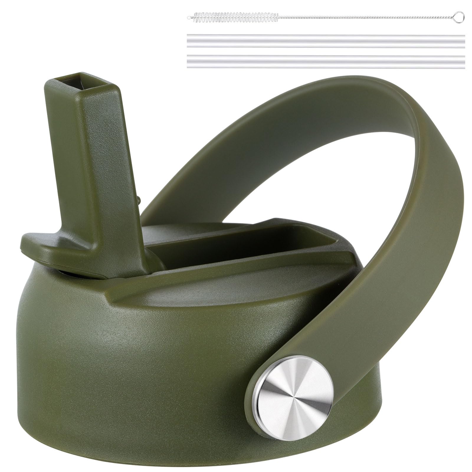 FLORAPELL Straw Lid for Hydro Flask Wide Mouth Water Bottles, Top Lids with Straw Compatible with Hydro Flask 32 40 oz, Replacement Cap Wide Mouth Straws Flip Lid Flex Handle (Olive)