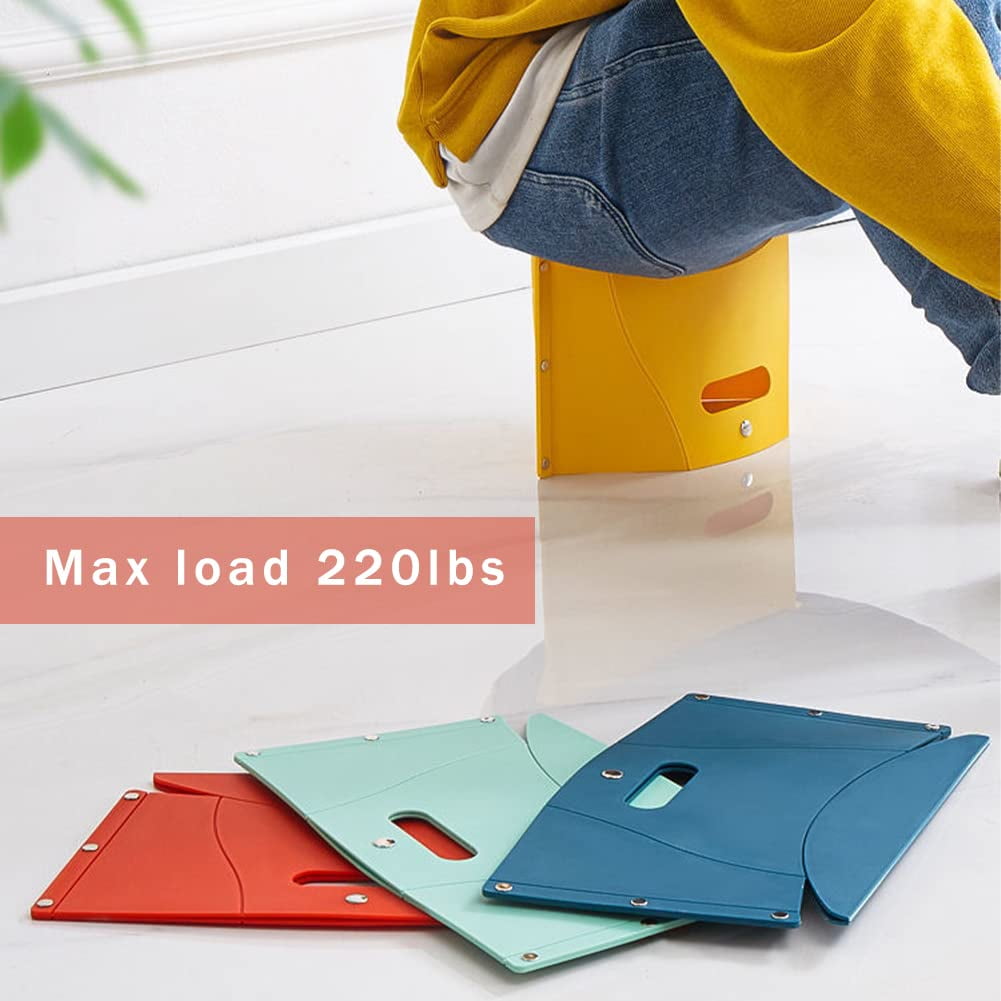 - 4 Steps to Use: Step 1: Take out the folded stool. Step 2: Hold the handles with both hands and pull outward. Step 3: Hold one side and press down the middle with other hand. Step 4: Sit down and rest. Maybe a little hard to open when first use because of high quality durable PP material, get better later.