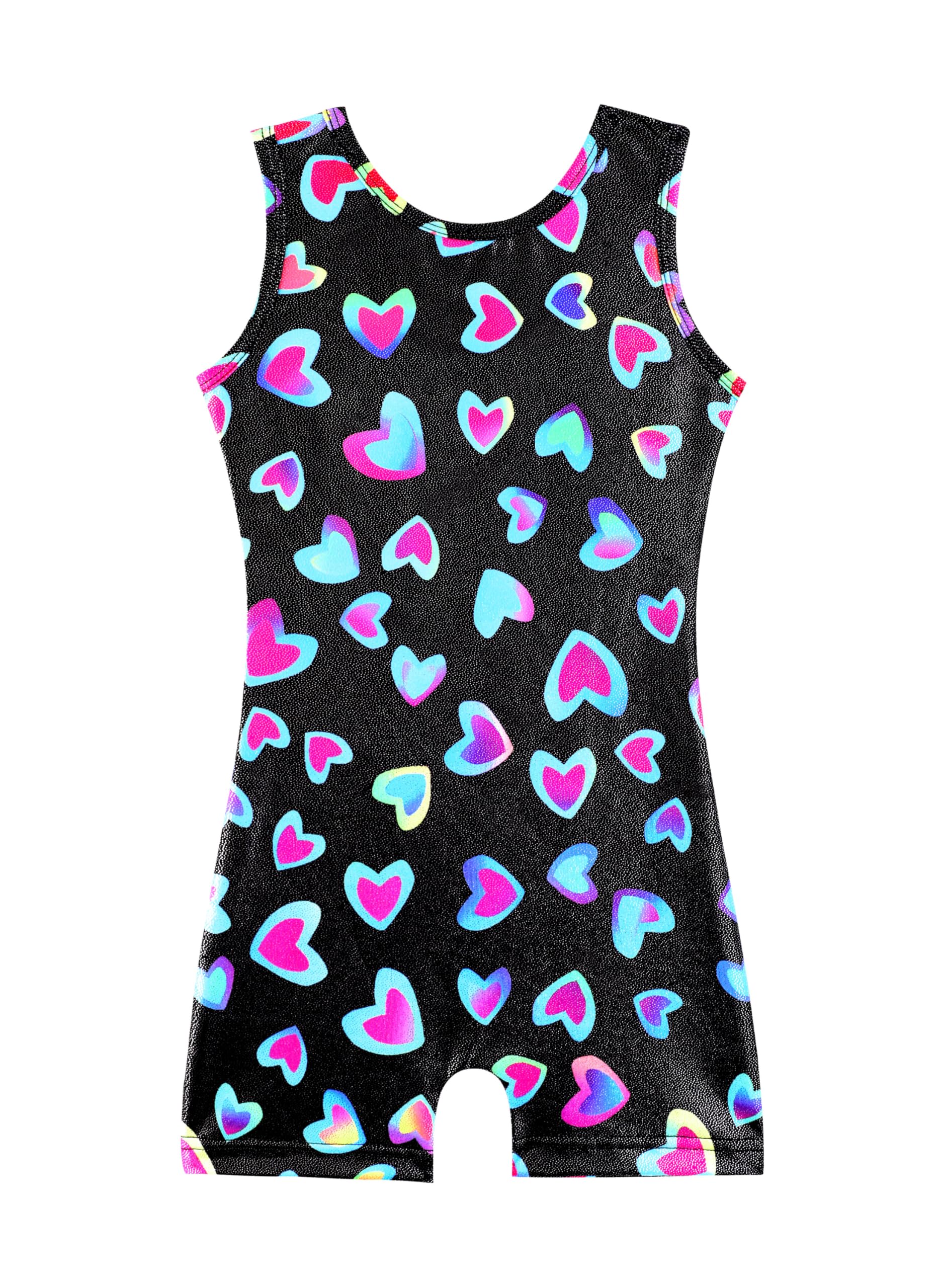 Girls Gymnastics Leotards 5t Size 5-6 Years Kids Toddlers Biketard Tumbling Outfits Outfits Unitard Shiny Black Hearts Multicolored Rainbow