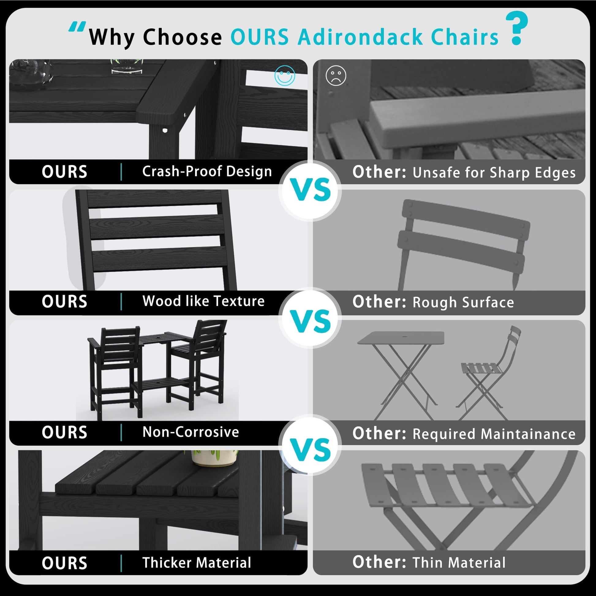 AreShark HDPE Tall Adirondack Chair Set with Removable Double Trays (Set of 2) Black